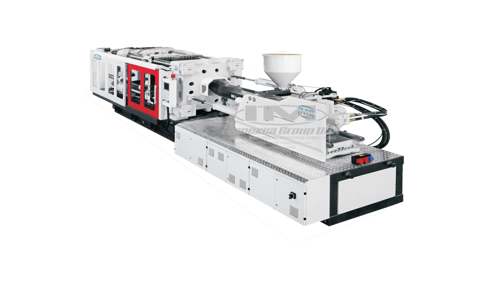 Equipped with servo system and larger pumps, as well as greater mold opening and tie bar distance.